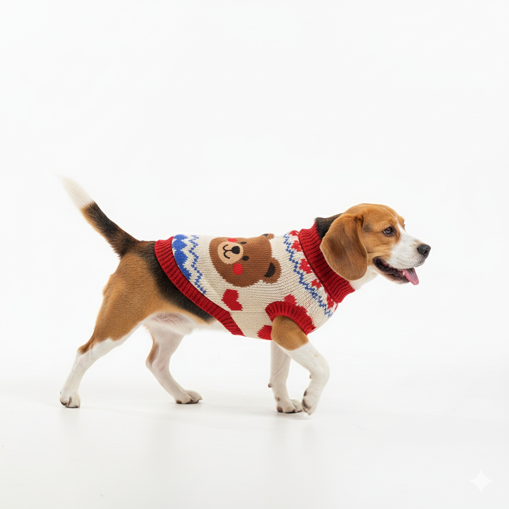 Unbearably cute! This soft knit sweater features a sweet teddy bear and heart design. Keeps your pup warm and looking adorable.